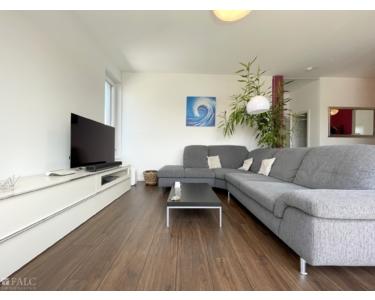 Die 2017 erbaute Wohnung überzeugt durch ihren offenen Grundriss, der eine helle und freundliche Wohnatmosphäre schafft. Große Fenster lassen viel Tageslicht herein und geben den Blick auf die umliegende Wohnumgebung frei, wodurch ein einzigartiges Wohngefühl entsteht. Der Wohnbereich, der Essbereich und die moderne Küche gehen nahtlos ineinander über und bieten so einen perfekten Raum für gesellige Abende und Familienleben.
