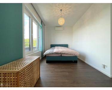 Der Rest der Wohnung ist mit edlem braunem Parkett ausgelegt, das für ein warmes und einladendes Wohngefühl sorgt. Große, dreifach verglaste Fenster in PVC-Rahmen lassen viel Tageslicht herein und bieten eine hervorragende Energieeffizienz. Diese Fenster sind zusätzlich mit elektrischen Rollläden ausgestattet, die Ihnen zusätzlichen Komfort bieten. Im Wohnzimmer und in beiden Schlafzimmern sorgt eine Klimaanlage für angenehme Temperaturen, selbst an heißen Sommertagen. Eine Fußbodenheizung sorgt in allen Räumen für wohlige Wärme und ein behagliches Wohngefühl.