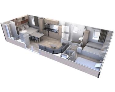 Jetzt für nur €51.133,- Das Trigano Inspitation (10,5m x 4m) ist ein modernes Chalet. Der französische Designer hat bei der Gestaltung dieses Chalets auf Luxus und Komfort geachtet. Es gibt 3 Schlafzimmer, also genug Platz für 6 Personen zum Schlafen. Jetzt für nur €51.133,-