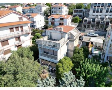 In einer attraktiven Lage in Crikvenica, nahe dem Meer und der Promenade, steht ein geräumiges Haus mit einer Nettofläche von über 240 m² zum Verkauf. Das Haus, das sich in der zweiten Reihe vom Meer befindet, liegt auf einem 437 m² großen Grundstück und besteht aus einem Keller, Erdgeschoss, erstem und zweitem Stock. Im Keller befindet sich eine Sommerküche mit Terrasse. Das Erdgeschoss, mit zwei Eingängen, umfasst ein Wohnzimmer mit Kamin, ein Hauptbadezimmer, einen Abstellraum, eine Küche, ein Schlafzimmer mit zusätzlichem Badezimmer, zwei Vorräume und eine Terrasse. Im ersten Stock befinden sich drei Schlafzimmer, eines mit Meerblick-Terrasse, das zweite mit kleinem Balkon und das dritte mit Balkon, sowie ein gemeinsames Badezimmer. Der zweite Stock, ein erhöhtes Dachgeschoss, umfasst ein kleines Schlafzimmer, einen großen halb-offenen Raum, der als Schlafzimmer, Wohnzimmer und Küche genutzt werden kann, und eine große Terrasse mit herrlichem Meerblick. Das Grundstück ist komplett eingezäunt und bietet Parkplätze für vier Autos im Hof.