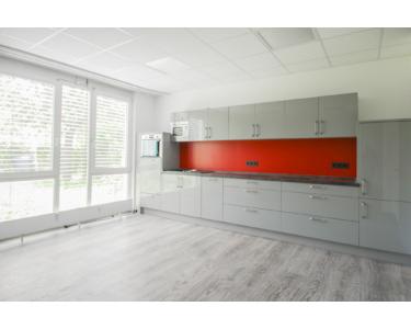 Pausenmöglichkeiten für Mitarbeiter gibt es rund 1 km entfernt: Das „Café und Restaurant Berns“ mit stetig wechselnden Tagesmenüs oder das „Pizzataxi bei Enrico“. Einkaufsmöglichkeiten wir REWE und ALDI liegen im Umkreis von rund 2 km.