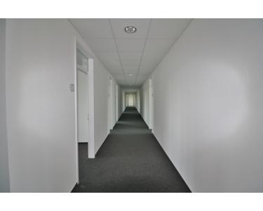 Ein langer Flur, wo jeweils rechts und links die Büroräume abgehen, führt bis in den hinteren Gebäudeteil.