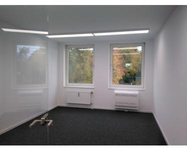 Im Bürotrakt im 2. Obergeschoss mit einer Gesamtfläche von ca. 242 m² stehen insgesamt fünf Einzelbüros in einer Größe von ca. 19 m² bis ca. 38 m² zur Verfügung, die Sie bequem per Aufzug erreichen können. Die Sanitäranlagen und die Teeküche können gemeinschaftlich genutzt werden.