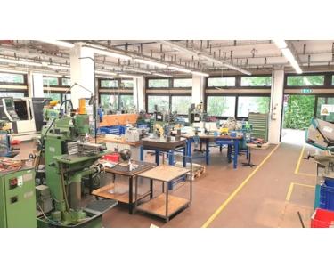 Im Erdgeschoss finden Sie derzeit eine Feinmechanik-Lehrwerkstatt mit Dreh-/ Stoß-/ Bohrstandmaschinen sowie CNC-Fräsmaschinen vor. Diese kann optional auf Absprache übernommen werden.