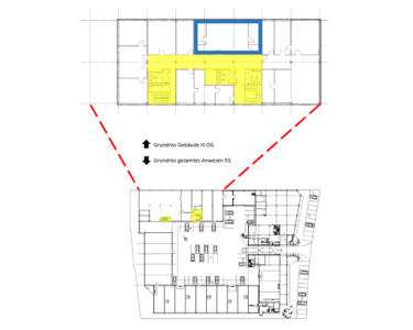 Weitere Flächen ab 25 m² bis 216 m² auf Anfrage verfügbar. Insgesamt bis zu 380 m² Bürofläche.