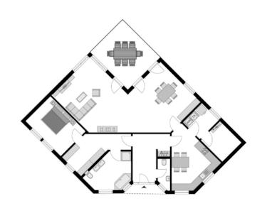 Mit einer kompakten Netto-Raumfläche von 94 m² präsentiert sich der Entwurf des Bungalows mit einem behaglichen und lichtdurchfluteten Wohn-/Ess- und Kochbereich, der clever übereck angelegt ist. Ein praktischer Zusatzraum bietet vielseitige Nutzungsmöglichkeiten, sei es als Kinderzimmer, Büro, Gästezimmer oder Hobbyraum. Das Raumkonzept ist ideal für Singles, Paare oder kleine Familien geeignet. Ein geräumiges Schlafzimmer mit großzügiger Stellfläche, ein Bad sowie ein Gäste-WC vervollständigen das Angebot an Räumlichkeiten.