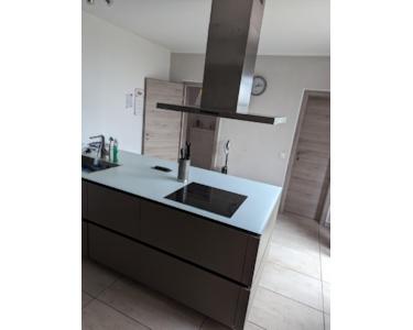Hochwertige Küche mit Glasarbeitsplatte verbleibt in der Immobilie und ist mit 10000 Euro bereits im Kaufpreis enthalten