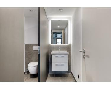 Barrierefreie WCs auf jeder Etage sowie getrennte Sanitäranlagen für Damen und Herren gewährleisten Komfort und uneingeschränkte Zugänglichkeit für Mitarbeiter und Besucher gleichermaßen ein weiterer Pluspunkt der modernen und inklusiven Gebäudekonzeption.