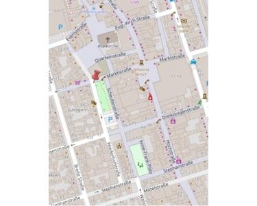 In der unmittelbaren Umgebung befinden sich diverse öffentliche Möglichkeiten zu parken. Um einen permanenten Parkplatz zu sichern, können z.B. im Schwanenmarkt-Parkhaus Stellplätze für 90,-EUR separat angemietet werden.