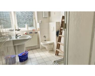 - Tageslichtbad mit Dusche, WC komplett gefliest