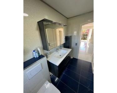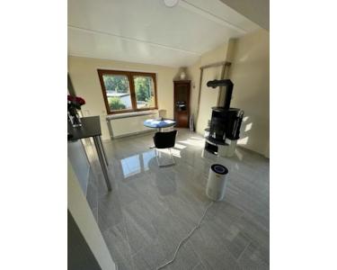 In Ihrem neuen Zuhause erwarten Sie hochwertige Materialien: Die Fliesen sind aus Granit, während im Kinderzimmer und im Schlafzimmer Vinyl Boden verlegt ist, nicht Laminat. Zusätzlich wurde in einigen Bereichen Quarz- Komposit verwendet.
