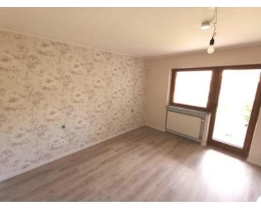 Beim Betreten der Wohnung gelangen Sie zunächst in einen großzügigen Flur, von dem eine Treppe in den Keller führt. Auf der linken Seite befindet sich die Küche, die mit einer modernen Einbauküche ausgestattet ist. Von dort aus öffnet sich der Raum zum hellen Ess- und Wohnzimmer, das durch große Fenster Licht durchflutet ist. Das Esszimmer verfügt über einen gemütlichen Kaminofen, während das Wohnzimmer einen direkten Zugang zu einem großzügigen Balkon bietet, der zusätzlich mit einer Markise ausgestattet ist und so für angenehmen Schatten sorgt. Ein weiterer Flur verbindet das Wohnzimmer mit einem flexibel nutzbaren Raum, der sich ideal als Arbeits- oder Kinderzimmer eignet. Direkt daneben befindet sich das Badezimmer, das mit einer Badewanne, Dusche, WC und einem Hygienebereich ausgestattet ist.