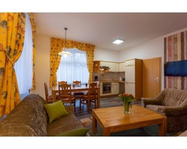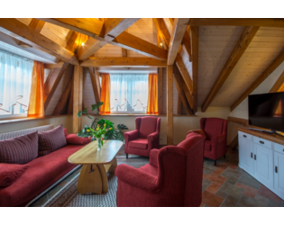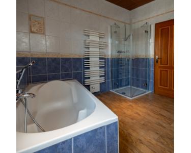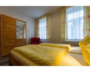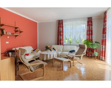 - 2. OG (Wfl. 128,37 m²): 4-RWE (möbliert - aktuell Ferienwohnung) mit folgenden Wohnflächen: Wohnen 26,45 m², Schlafen 25,35, 20,62 und 9,07 m², Kochen 22,7 m², Bad (W/D/F/WM) 11,62 m², Korridor 12,08 m², Balkon 1,93 m² (mit 0,48 m² in der Wohnfläche enthalten)