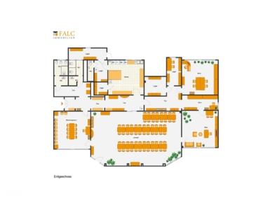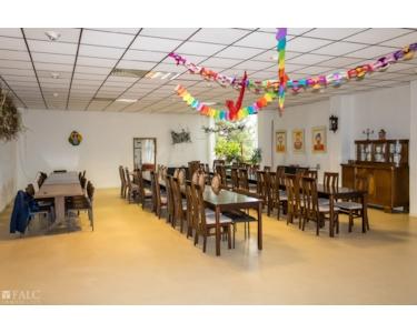 Das Grundstück hat eine Größe von insgesamt 2.197 m² und damit ausreichend Platz für Park- und Stellflächen (aktuell 12 Stck). Das Gebäude verfügt über 3 große Büroräume, einen Veranstaltungsraum (Saal), eine große Küche mit separatem Kühlraum, diverse Lagerräume und getrennte, sanitäre Anlagen.