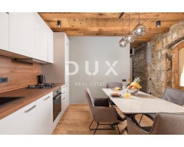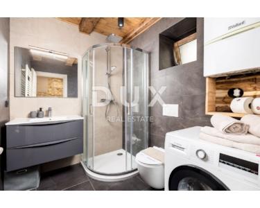 Im speziellen DUX-Angebot an Häusern zur Miete gibt es ein charmantes Steinhaus in Ičići, in der Nähe von Opatija, das vom 1. Oktober 2024 bis 1. Juni 2025 zur Miete verfügbar ist. Dieses geräumige und luxuriöse Haus verfügt über zwei Schlafzimmer mit Kingsize-Betten und eigenem Bad. Die Kombination aus Stein und Holz dominiert im schönen offenen Wohnzimmer mit voll ausgestatteter Küche und Esszimmer. Das Wohnzimmer verfügt über einen Flachbildfernseher mit Streaming-Diensten, einen Kamin und eine Terrasse mit Blick auf das Meer. Die wunderschön eingerichteten Zimmer sind mit einer Klimaanlage ausgestattet und jedes Zimmer verfügt über ein eigenes Badezimmer mit luxuriösen Keramikfliesen. Das ganze Haus verfügt über WLAN, was auch die Möglichkeit bietet, von zu Hause aus zu arbeiten. Die Schlafzimmer bieten einen wunderschönen Blick auf das Meer, während der gesamte Raum mit Holzböden und -decken sowie einer glänzenden Holztreppe, die in die obere Etage führt, aufgefrischt ist. Jedes Fenster bietet einen wunderschönen Blick auf die Kvarner-Bucht. Ein privater beheizter Swimmingpool mit Platz zum geselligen Beisammensein und einer Sonnenterrasse ist der perfekte Ort zum Entspannen und Verweilen an der frischen Luft dieses schönen Dorfes am Fuße der Učka. Das gesamte Haus ist von einem hohen Zaun umgeben und garantiert so Privatsphäre und Frieden. Dieses charmante Steinhaus liegt nur 10 Minuten vom Strand Ičići und der berühmten historischen Promenade Lungomare entfernt, die Volosko, Opatija, Ičići, Ika und Lovran verbindet. Direkt vor dem Haus befinden sich zwei Parkplätze. Wenn Sie ein Haus zur Miete in einer ruhigen Gegend an der Riviera von Opatija, abseits von Verkehr und lauter Musik, suchen, ist diese wundervolle Residenz mit ausgezeichneter Lage die richtige Wahl für Sie.
