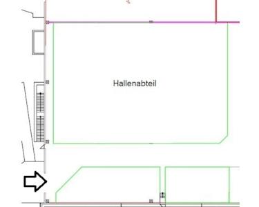 Die Fläche kann über eine Rampe angedient werden. Ein großes Sektionaltor ist vorhanden.