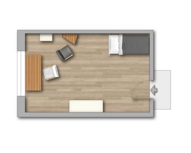 Zimmer - voll möbliert mit Bett (inkl. Matratze), Schreibtisch, Stuhl, Regal, Schrank, inkl. Internet, Heizung, Strom, Wasser u. Antennenanschluss;