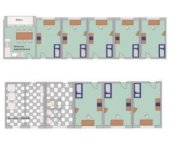 Wir bieten WG´s mit 5-9 Zimmern mit Gemeinschaftsbädern, Küche, Aufenthaltsraum und Balkon direkt in der Nähe der Uniklinik.