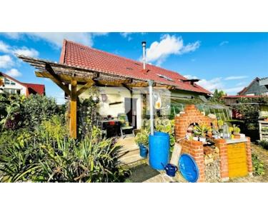 Hier lassen ein großes Gewächshaus, ein Gerätehaus, ein Brunnen mit elektrischer Pumpe zur Bewässerung, ein idyllischer Freisitz und ein Pool für die warmen Sommertage keine Wünsche offen.