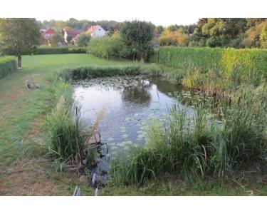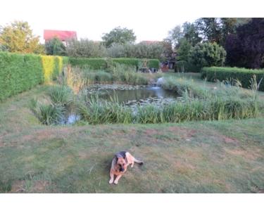 Schöner angelegter Garten, eingezäunt mit Gartenteich und Obstbaumbestand. Aufgrund der Größe des Grundstücks kann es der Länge nach zweigeteilt und sogar separat verkauft werden, eignet sich aber auch hervorragend für die Tierhaltung und für den Gartenbetrieb.