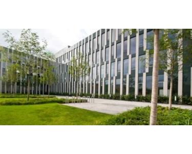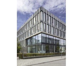 Das dreigeschossige Bürohaus beeindruckt mit seiner einzigartigen Architektur und der durchdachten Gestaltung. Die interessant gegliederte Fassade aus Glasfaserbeton-Elementen, eingefärbten Glaspaneelen und großzügigen Fensterflächen verleiht dem Gebäude seinen besonderen Reiz. Der u-förmige Grundriss schafft einen fast atriumartigen Grünbereich mit integrierten Parkplätzen. Betonkernaktivierung in den Zwischendecken sorgt für eine effiziente Kühlung und Beheizung der Räume. Sämtliche Räume sind flexibel teilbar, um individuelle Anforderungen zu erfüllen.