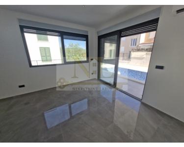 Apartment S1 im Erdgeschoss besteht aus: drei Schlafzimmern, zwei Badezimmern, Flur, geräumigem Wohnzimmer mit Küche und Esszimmer, Flur, gepflasterter Terrasse, Garten und eigenem privaten Pool.