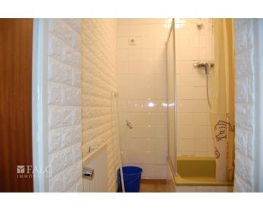 Beim Betreten des Hauses gelangen Sie über einige Stufen in das zentrale Treppenhaus. Dieses führt Sie in alle Geschosse. Im Erdgeschoss erwartet Sie ein geräumiges Wohnzimmer, das einen direkten Zugang zum großzügigen Balkon bietet. Hinter einer Schiebetür befinden sich das Schlafzimmer, dahinter folgt die Küche und das Badezimmer. Das Badezimmer ist mit Dusche, Toilette und Waschbecken ausgestattet.