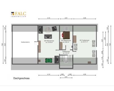 Zwei zusätzliche nicht beheizte Zimmer befinden sich im Dachgeschoss, diese können durch eine Elektroheizung beheizt werden.