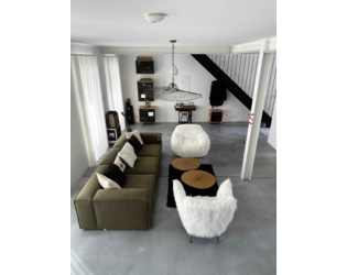 Das Obergeschoss mit einer Gesamtfläche von 124 m² bietet elegant gestaltete Räume: ein Badezimmer, eine Aussentreppe, eine Terrasse und eine geräumige offene Küche mit Ess- und Wohnbereich. Der geschlossene Teil beträgt 80 m² und bietet ein luftiges und komfortables Ambiente.