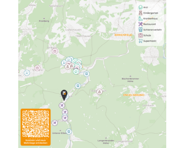Für Familien mit kleinen Kindern ist die Nähe zu mehreren Kindergärten ein großer Vorteil. Der nächstgelegene Kindergarten ist etwa 2 km entfernt und auch die weiteren Kinderbetreuungseinrichtungen sind schnell erreichbar. Ähnlich günstig liegt die Schloßbergschule für die älteren Kinder, die sich ebenfalls in einem Umkreis von ca. 2 km befindet.