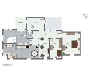 Das Objekt ist ein Anbau an das eigentliche 3-Familien-Wohnhaus und ist somit von diesem getrennt. Ein Wohngefühl wie in einer Doppelhaushälfte. Das Objekt erstreckt sich über zwei Stockwerke mit sechs Zimmern. Im Erdgeschoss erreicht man über den Flur den Lagerraum, das Obergeschoss und die Wohnräume im Erdgeschoss.