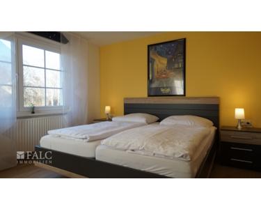 Ebenso befindet sich im Objekt eine separate Wohnung mit ca. 90 m² und einem Südbalkon. Die Wohnung ist aufgeteilt in einen Wohn und Essbereich, ein sehr geräumiges Badezimmer mit Whirlwanne, ein Schlafzimmer und eine Küche mit angrenzendem Büro. Ein Apartment mit ca. 40 m² Wohnfläche wurde im Dachgeschoss eingerichtet.