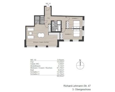 Zum Verkauf steht eine 94,65 m² große 3-Zimmer-Wohnung im modernen Neubauprojekt "Richard L." im Leipziger Stadtteil Südvorstadt.