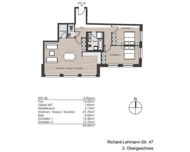 Zum Verkauf steht eine 94,65 m² große 3-Zimmer-Wohnung im modernen Neubauprojekt "Richard L." im Leipziger Stadtteil Südvorstadt.