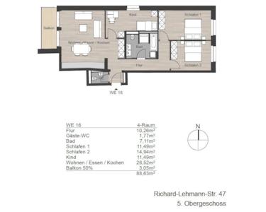Zum Verkauf steht eine 88,97m² große 3 -Zimmer-Wohnung im modernen Neubauprojekt "Richard L." im Leipziger Stadtteil Südvorstadt.