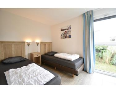 Das zweite Schlafzimmer verfügt ebenfalls über 2 Boxspringbetten, die jedoch getrennt sind.
