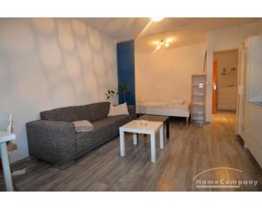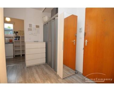 Die Wohnung wurde 2024 teilsaniert, Schlafbereich durch Schiebegardinen separierbar. Wohn/Schlafraum mit ausreischend Schränken, Sofa und Schreibtisch.