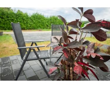 Der Haupteingang befindet sich seitlich. Der hintere Garten ist eingezäunt und momentan mit Rasen bepflanzt, so dass der gesamte Garten sehr pflegeleicht ist.