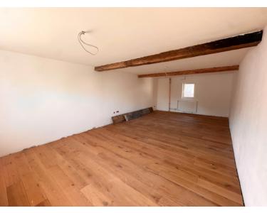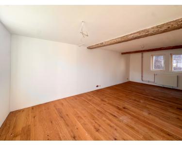 Die Wohnfläche beträgt ca. 150 m² und ist in großen Teilen bereits hochwertig saniert. In vielen Räumen wurde Echtholzboden verlegt. Der Einbau eines Kaminofens ist möglich. Das ausgebaute Dachgeschoss bietet zusätzlichen Wohnraum und vielfältige Nutzungsmöglichkeiten.