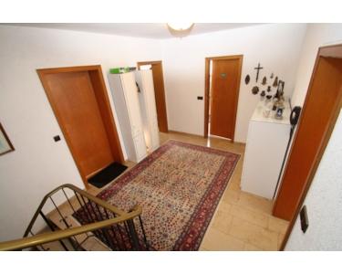 Das massive Haus erstreckt sich über vier Etagen und umfasst neun Zimmer, darunter sechs Schlafzimmer und zwei Badezimmer, ideal für eine große Familie oder zwei separate Haushalte. Die Ausstattungsqualität ist solide, mit einem zusätzlichen Gäste-WC.