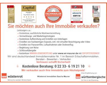 Vereinbaren Sie ein unverbindliches Beratungsgespräch mit uns. In diesem stellen wir uns und unsere Vermarktungswerkzeuge vor und lernen Sie und Ihre Immobilie kennen.Alle hier aufgeführten Objektdaten sind Angaben des Eigentümers, wofür wir keine Garantie übernehmen.