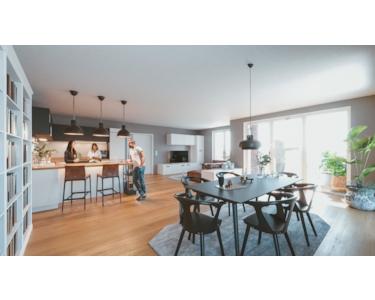 Die Wohnbereiche sind offen gestaltet und profitieren von großzügigen Fensterfronten, wodurch die Räume mit viel natürlichem Licht durchflutet werden. Umlaufende (Dach-) Terrassen und Balkone sorgen für eine großzügige Möglichkeit, sich im Freien aufzuhalten.