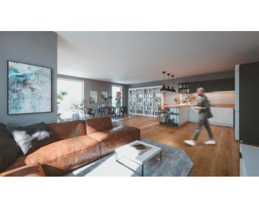 Die Wohnbereiche sind offen gestaltet und profitieren von großzügigen Fensterfronten, wodurch die Räume mit viel natürlichem Licht durchflutet werden. Umlaufende (Dach-) Terrassen und Balkone sorgen für eine großzügige Möglichkeit, sich im Freien aufzuhalten.