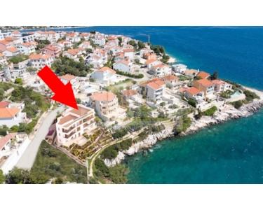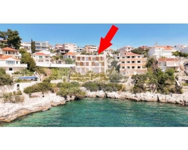 Wir verkaufen eine geräumige Dreizimmerwohnung S2 im ersten Stock, erste Reihe zum Meer, Okrug Gornji, Insel Čiovo.