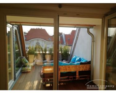 Vollmöblierte Altbauwohnung in der 4. und 5 Etage eines Altbaus (kein Fahrstuhl) mit 16 qm großer Dachterrasse und weiteren Balkon.