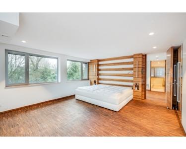 • großes Schlafzimmer mit Klimaanlage, Einbauschränken und Designer-Bett