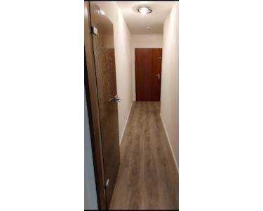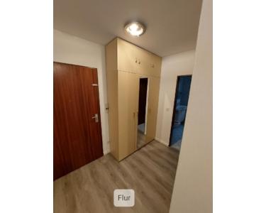 Ein sehr gepflegtes Treppenhaus empfängt den Besucher. Linker Hand vom Eingang befindet sich das Badezimmer mit Badewanne und Fenster. Daneben befindet sich das Schlafzimmer. Geradeaus durch den Flur kommen Sie ins geräumige Wohn-Esszimmer mit angrenzender Küche (ohne Einbauküche!) sowie zum Süd/West - Balkon. Alle Heizkörper sind inzwischen weiß gestrichen.