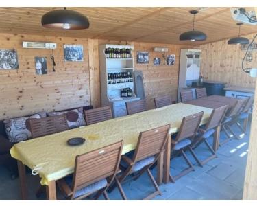 Mit Holzschuppen und einem modernen, belebten Gemeinschaftsbereich sowie einer Sommerküche.