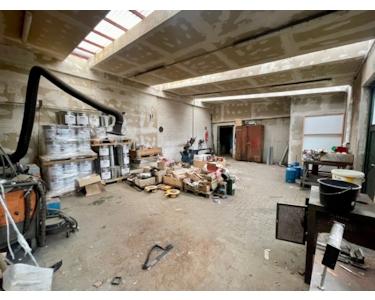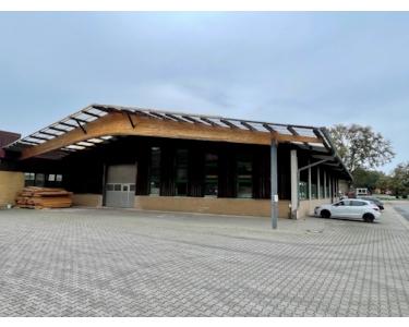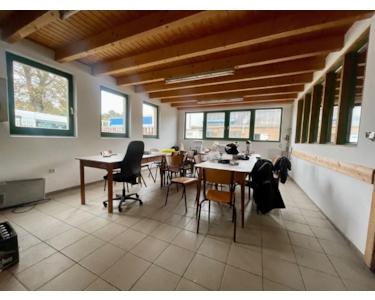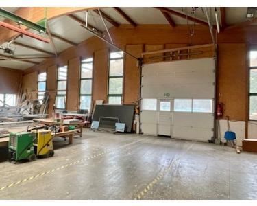 Die Haupthalle mit Sozialräumen verfügt über ca. 620 m² nutzbare Lager-/Produktionsfläche, weitere ca. 70 m² als Sozialräume und zusätzlich ca. 150 m² an Nebenräumen. Durch ein großes Rolltor kann die Halle befahren werden, die Durchfahrtshöhe beträgt dabei ca. 4 m. Durch die ehemalige Nutzung als Produktionshalle einer Zimmerei, sind Krananlagen verbaut und nutzbar. Die Sozialräume bietet einen Aufenthaltsraum, eine Umkleide, eine WC-Anlage und 2 Büros.