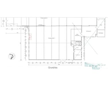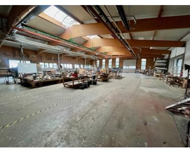 Die daran angeschlossene große Lager-/Produktionshalle bietet ca. 1.000 m² freie, unbeheizte Fläche. Die Halle ist von der Haupthalle erreichbar, hat zusätzlich an beiden Stirnseiten Rolltore, sodass eine Durchfahrung möglich ist. Die Rolltore haben eine Höhe von ca. 4 m.